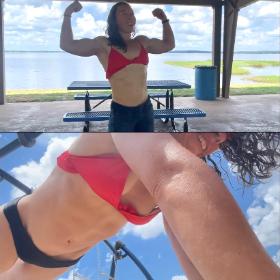 | Now, an AMAZING BONUS added to the video for FREE!!! Two links totaling 10:31 in length! Watch Alicia establish a new world record in rope climbing on a 14 ft rope in 3 arms only categories in one hour for the 3 combined fastest times! Watch behind the scenes and up close sweaty flexing between rope climb attempts. Major biceps and forearm flexing… Alicia also shares with fans for the VERY FIRST TIME her unique hand muscle in the palm of her hand that is rare to find. �� �� Next up, Watch Alicia progress in front levers on a very, very, VERY thick tree branch. How long can she hold? Find out. How long can she hold a book that she published in between her feet for a flexed hang L sit rope hold. She demonstrates truly amazing feats of strength in this bonus video and the flexing is out of this world too! She will even pull out the tape and measure her bicep! �� The BONUS is a real treat for fans! |