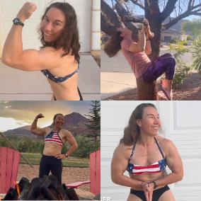 | Watch World Record Weber warmup for the Greatest Arm Wrestle of her life - armwrestling YOU!!! She will perform continuous unique exercises in trees and among forests including wide grip front levers, windshield wipers, Deep L Dips, and hanging exercises. THEN, get your adrenaline pumping, raise your heart rate, and get stronger as you take on World Record Weber in a 2 minute and 20 second armwrestling match!!! Let see who wins, loses, or draws!!! Finally, there will be Out-of-this-World flexing at the END!!! Don’t miss this great offer!! *There is a moving camera with a lot of close up shots and many angles covered when flexing. |