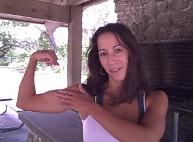 shows her shapely body in a very sexy flexing video. She really takes pride in showing off her absolutely flawless physique. |